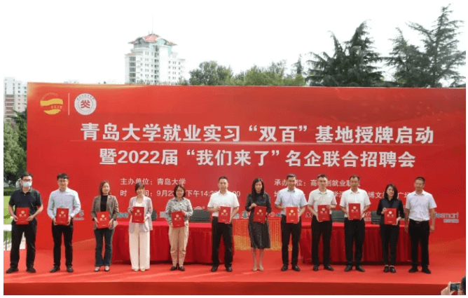 2021.10.16青島大學(xué)就業(yè)實(shí)習(xí)“雙百”基地授牌啟動(dòng)儀式暨2022屆“我們來了”名企聯(lián)合招聘會(huì)在青島大學(xué)浮山校區(qū)博文樓前廣場舉行,酷特智能作為在大學(xué)生就業(yè)實(shí)習(xí)方面與青島大學(xué)有長期深度合作的優(yōu)質(zhì)單位,受邀參加了本次啟動(dòng)儀式,酷特智能人力資源經(jīng)理劉妍代表出席。