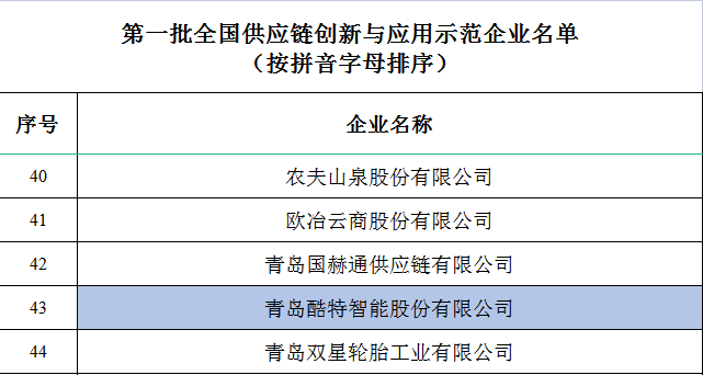 7月13日,商務部等8部委聯(lián)合公布了第一批10個全國供應鏈創(chuàng)新與應用示范城市和94家示范企業(yè)名單。其中,青島入選全國第一批供應鏈創(chuàng)新與應用示范城市,酷特智能入選示范企業(yè)。