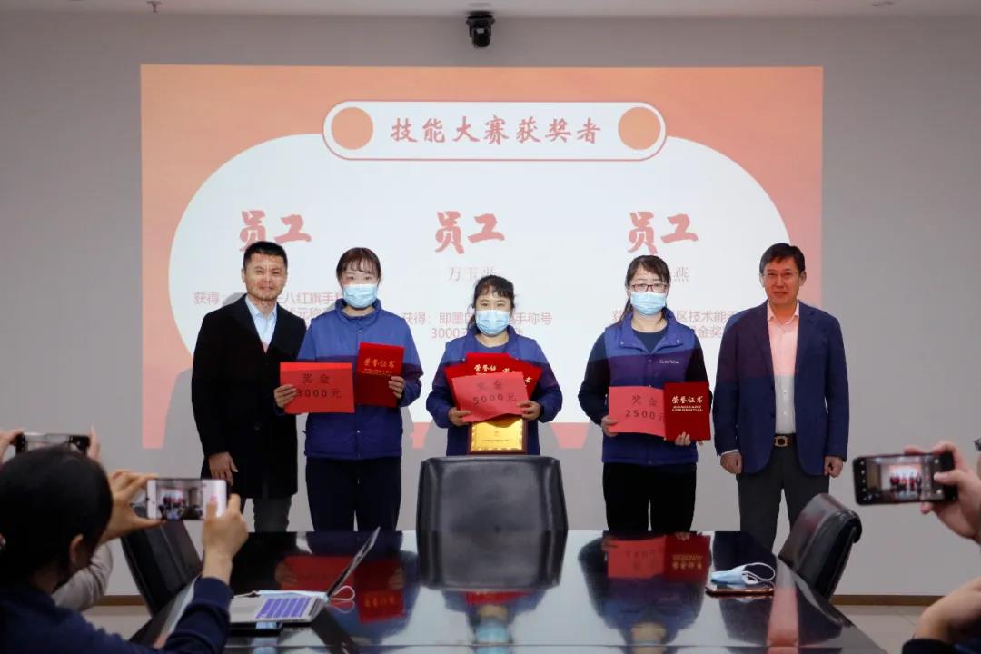 即墨區(qū)第六屆職業(yè)技能大賽獲獎員工及2021年度優(yōu)秀員工合影