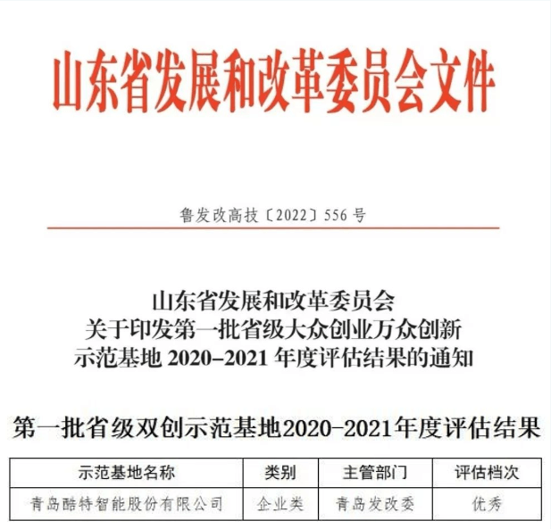 為更好地落實“大眾創(chuàng)業(yè)萬眾創(chuàng)新”示范基地帶動作用,山東省發(fā)展改革委委托省工程咨詢院,對第一批省級大眾創(chuàng)業(yè)萬眾創(chuàng)新示范基地2020-2021年度工作情況進行了評估。近日,評估結(jié)果出爐,酷特智能作為首批山東省“雙創(chuàng)”示范基地,在本次評估中被評為“優(yōu)秀”。