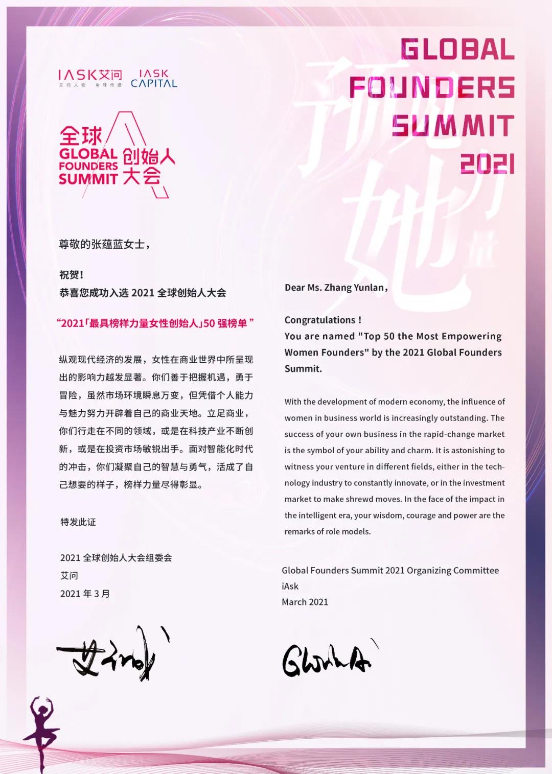 近日由《艾問人物》發(fā)起的全球創(chuàng)始人大會正式發(fā)布2021「最具榜樣力量女性創(chuàng)始人」50 強(qiáng)榜單,酷特智能董事長張?zhí)N藍(lán)實力上榜。