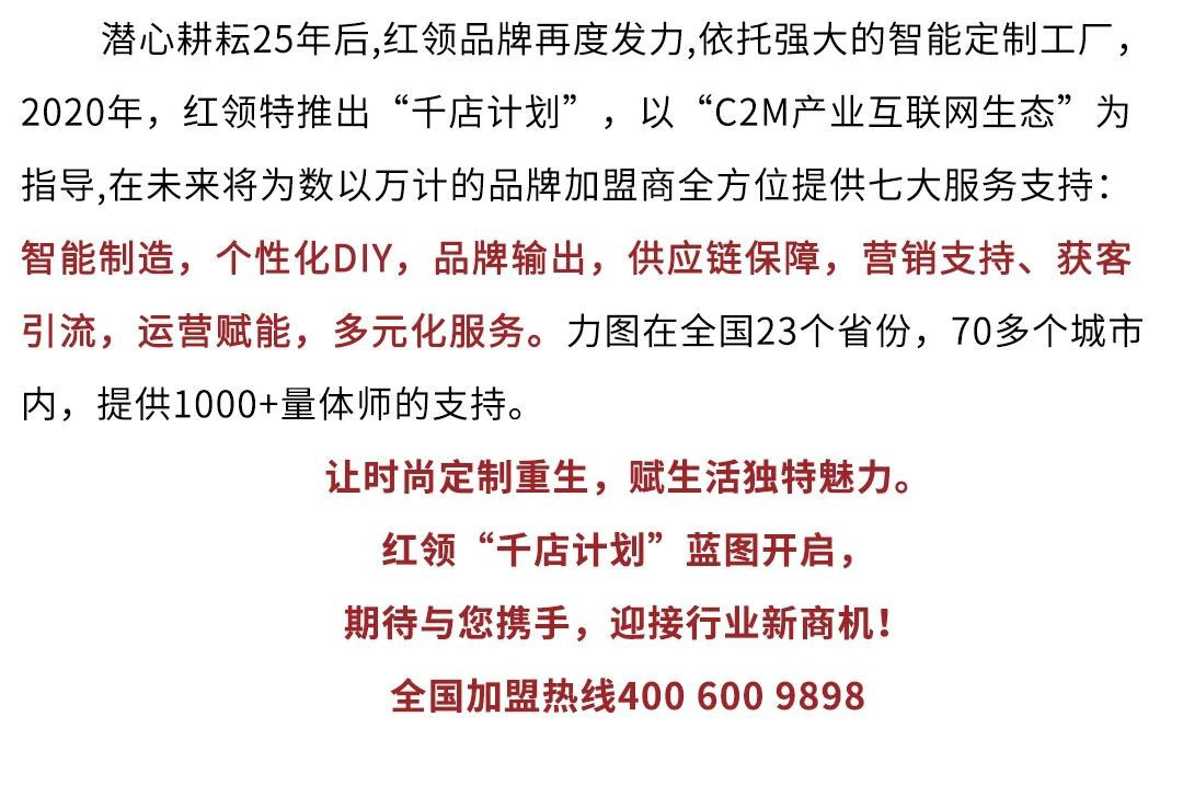 4月16日,酷特智能旗下品牌紅領(lǐng)REDCOLLAR“千店計劃”再提速——紅領(lǐng)仙桃店正式開業(yè)。開業(yè)當(dāng)天,門店推出全場產(chǎn)品8折的優(yōu)惠政策,活動持續(xù)至4月21日,眾多消費者慕名前來,爭先了解紅領(lǐng)品牌,現(xiàn)場體驗個性化定制服務(wù)等。