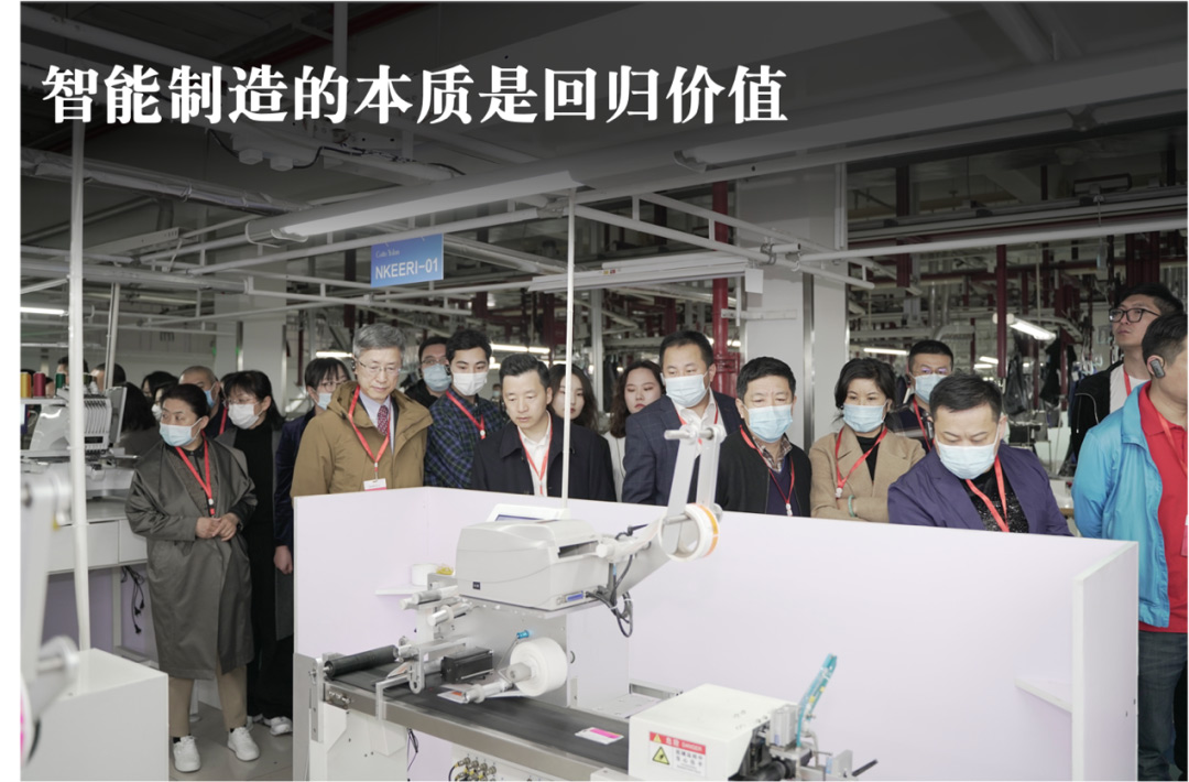在參觀酷特智能智能制造工廠的時候我們發(fā)現(xiàn),其“智能制造”并非完全是“無人工廠”,反而仍舊是人工流水線在進行手工制作,它與我們所想象的智能制造完全不同??崽刂悄懿]有一味的追求工業(yè)4.0所謂的數(shù)字化、智能化,而是將其與自身行業(yè)屬性、特性相結(jié)合,將服裝個性化設計需求進行拆解并形成數(shù)據(jù)庫,通過人機協(xié)同的流水線實現(xiàn)規(guī)模化和效率。在改革的過程中,酷特智能沒有被智能制造的模式所束縛,而是基于價值邏輯,從產(chǎn)品初心和客戶價值出發(fā),著眼于戰(zhàn)略創(chuàng)新。
