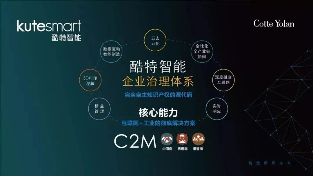 實(shí)際上當(dāng)很多企業(yè)還在研究“互聯(lián)網(wǎng)+”大數(shù)據(jù)、“供給側(cè)改革”等新名詞時(shí),酷特智能就已經(jīng)提前布局,依托大數(shù)據(jù)和互聯(lián)網(wǎng)技術(shù),完成了對(duì)傳統(tǒng)工廠的智能化改造,解決了個(gè)性化定制與工業(yè)化生產(chǎn)之間的矛盾,建立起C2M商業(yè)模式的產(chǎn)業(yè)互聯(lián)網(wǎng)生態(tài),成為中國(guó)產(chǎn)業(yè)互聯(lián)網(wǎng)時(shí)代上市的企業(yè)代表,為我國(guó)傳統(tǒng)制造企業(yè)的未來(lái)發(fā)展做出了示范。